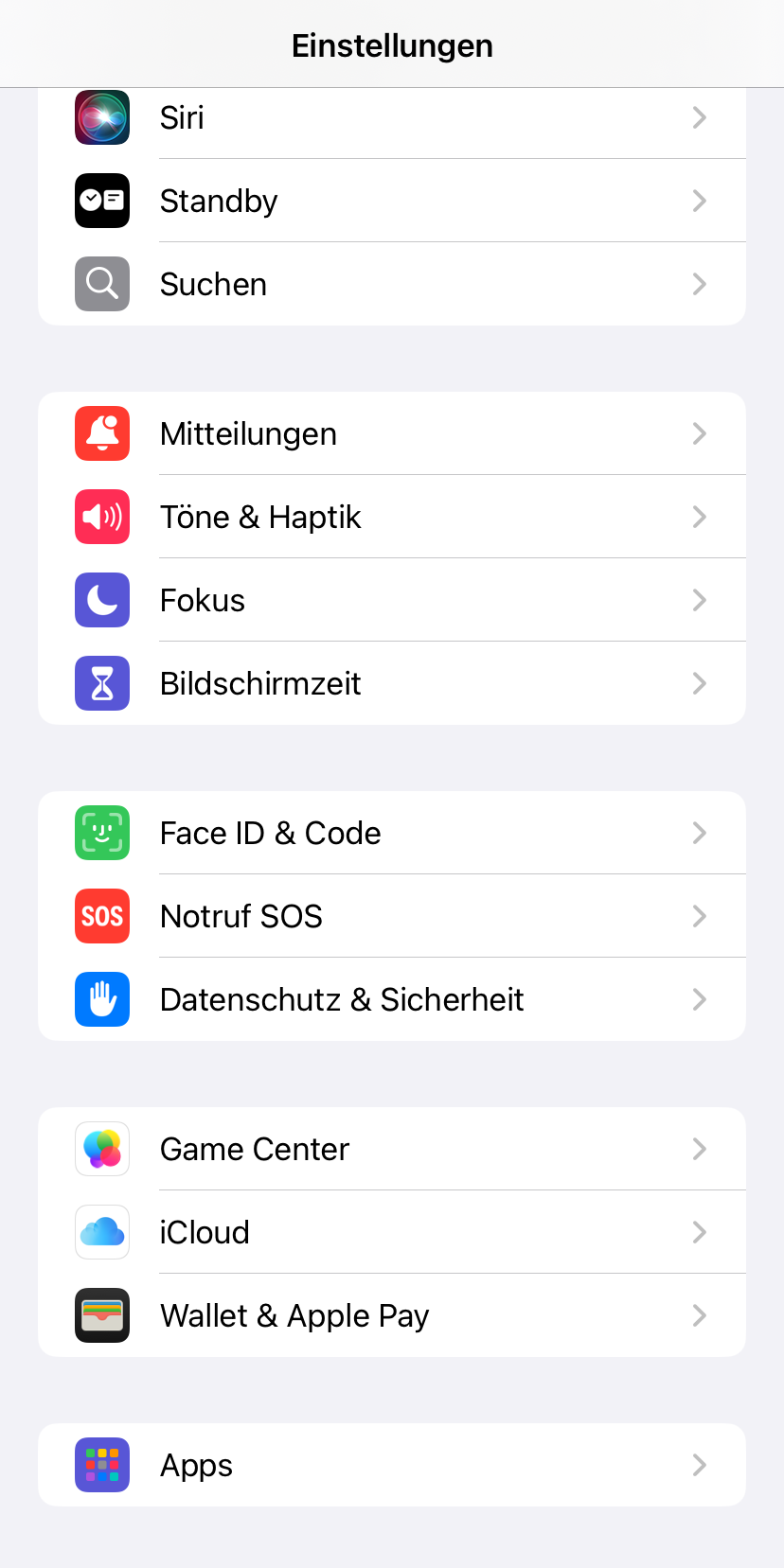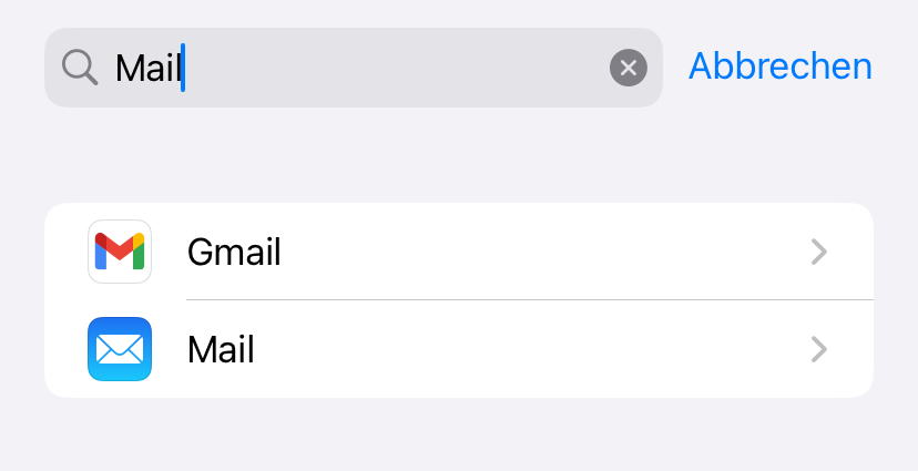 - Im Abschnitt Apps in den Einstellungen wählen Sie Mail aus: