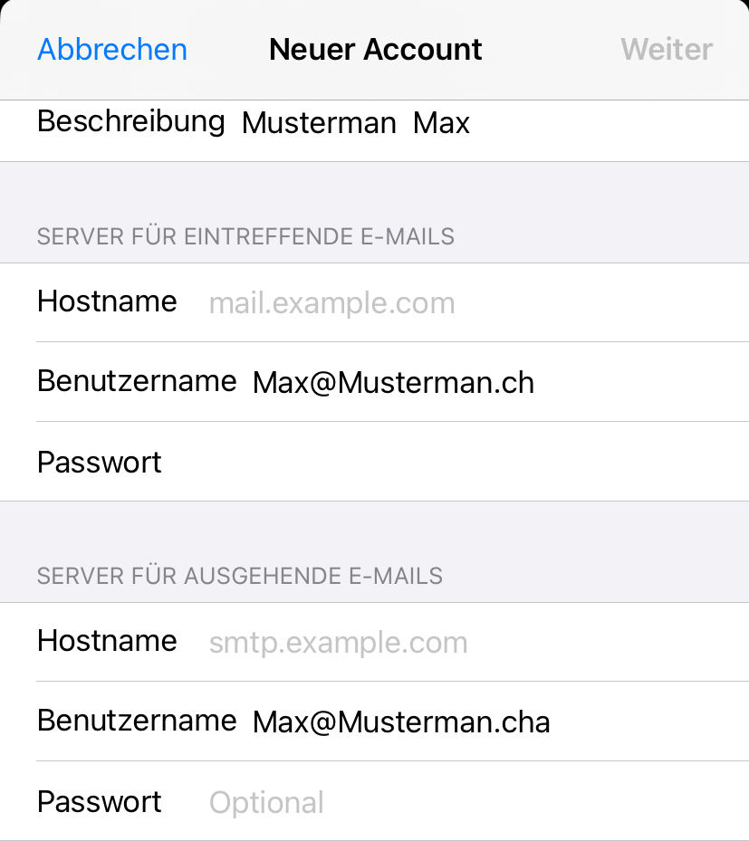 - Sichern Sie die Informationen und warten Sie, bis die Account-Informationen überprüft wurden. Der Account wurde nun eingerichtet.