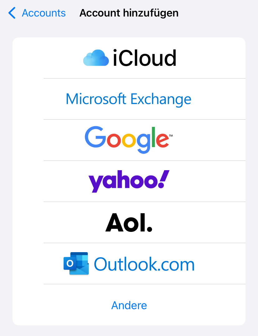 - Tippen Sie zuunterst auf Account hinzufügen: