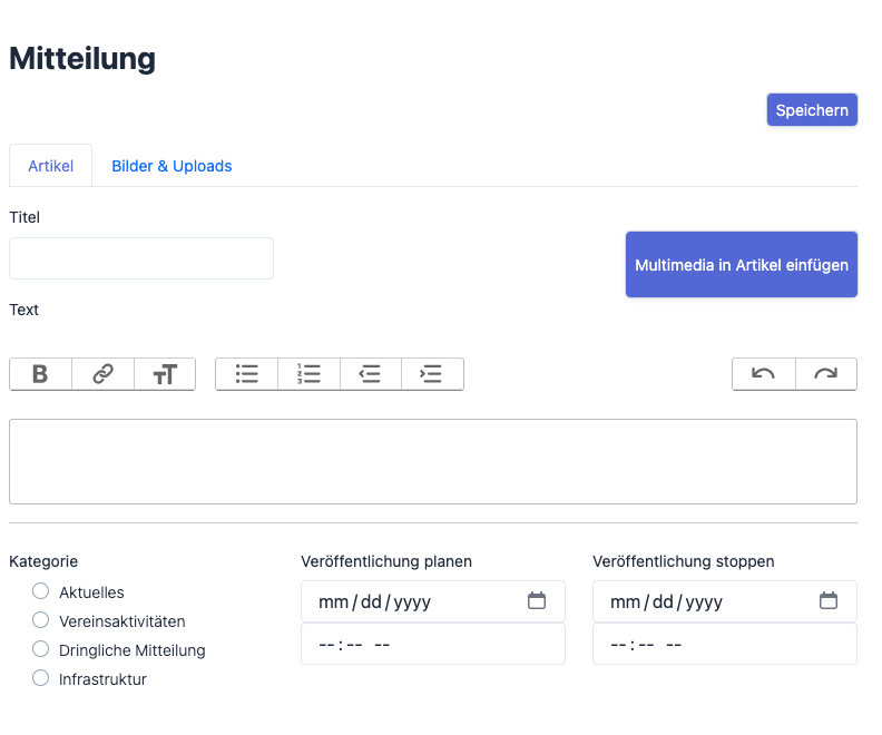 - Multimedia Artikel hinzufügen