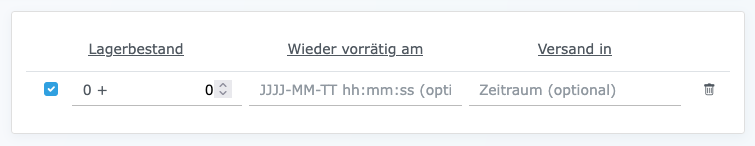 Auf das Plus klicken (5) Wenn der Lagerbestand unlimitiert ist dann das Häkchen wegnehmen (6) Wenn der Lagerbestand limitiert ist, Zahl eingeben (7) Lagerbestand löschen (8)