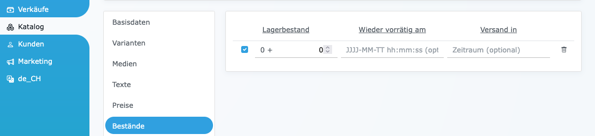 Der waren bestand kann unter katalog -> Produkte -> Das gewünsche Produkt anklicken -> Bestände edditiert werden.