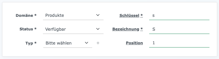 Auf «Produkte» setzen (3) Typ des eben erstellten Warenbestands auswählen (Siehe Punkt 5) (4) Interne Bezeichnung und Bezeichnung einfügen (5) Position beim aufklappen festlegen (6) Position 0: (7a) Position 1: (7b) Position 2: (7c) usw.