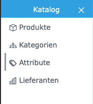 Unter «Katalog» zu «Attribute» navigieren (1) Auf das Plus klicken (2)