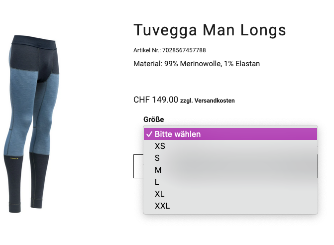 Im Shop zum Produkt navigieren (z.B Hose) und den Typ auf «Selection» umstellen (8)