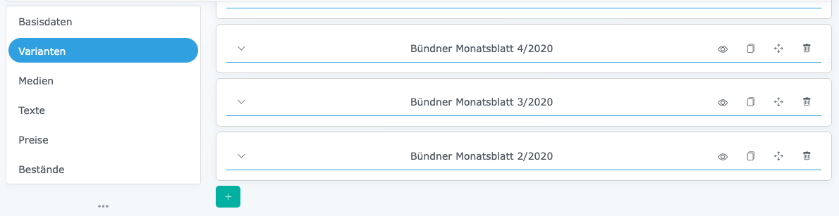 Auf «Varianten» navigieren (9) Auf «Plus» klicken (10)