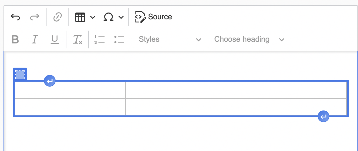 Klicken Sie auf den Button «Tabelle einfügen», legen Sie die Zeilen- und Spaltenanzahl fest indem Sie sie in der Vorschau einzeichnen. Nachdem die Tabelle eingefügt ist, stehen Ihnen umfangreiche Werkzeuge zur Bearbeitung der Tabelle im Editor zur Verfügung.