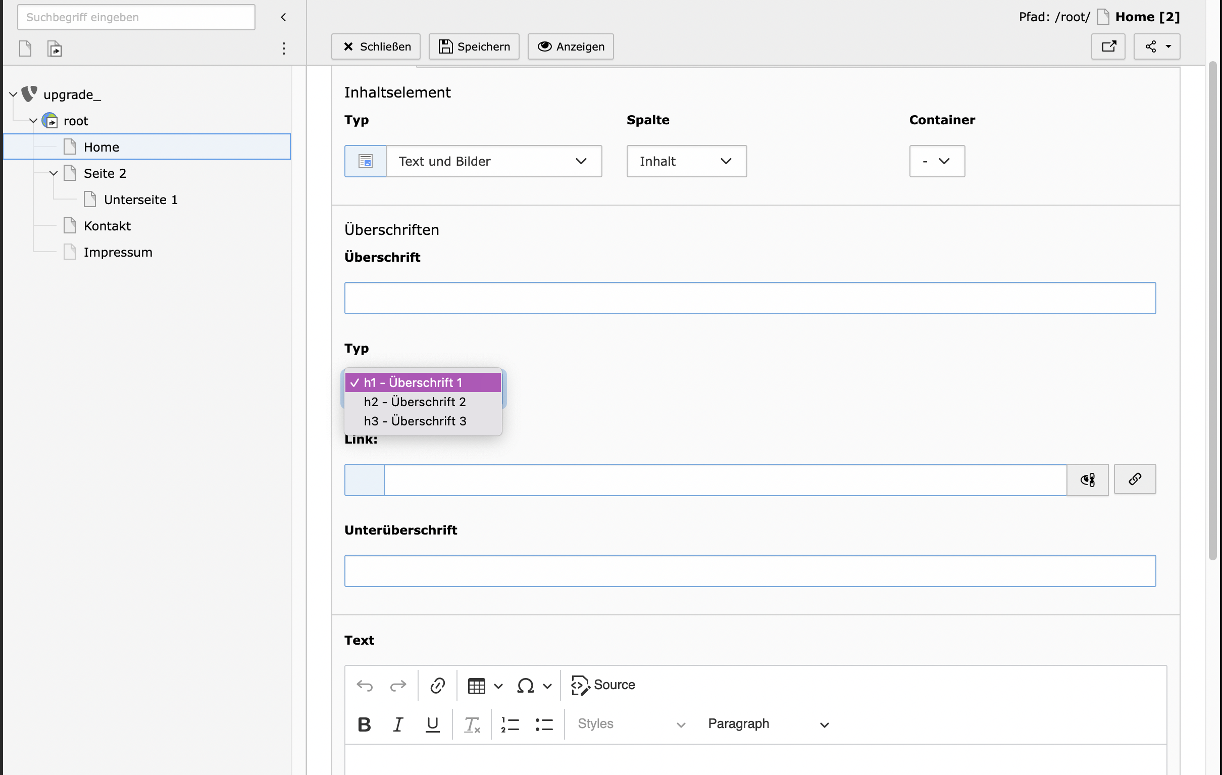 Eingabemaske / TYPO3-Editor