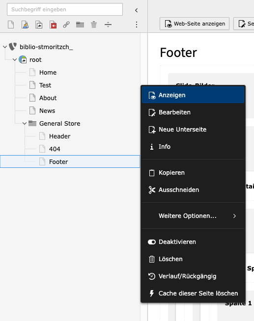 - Rechtsklick auf die Seite, die Sie bearbeiten möchten