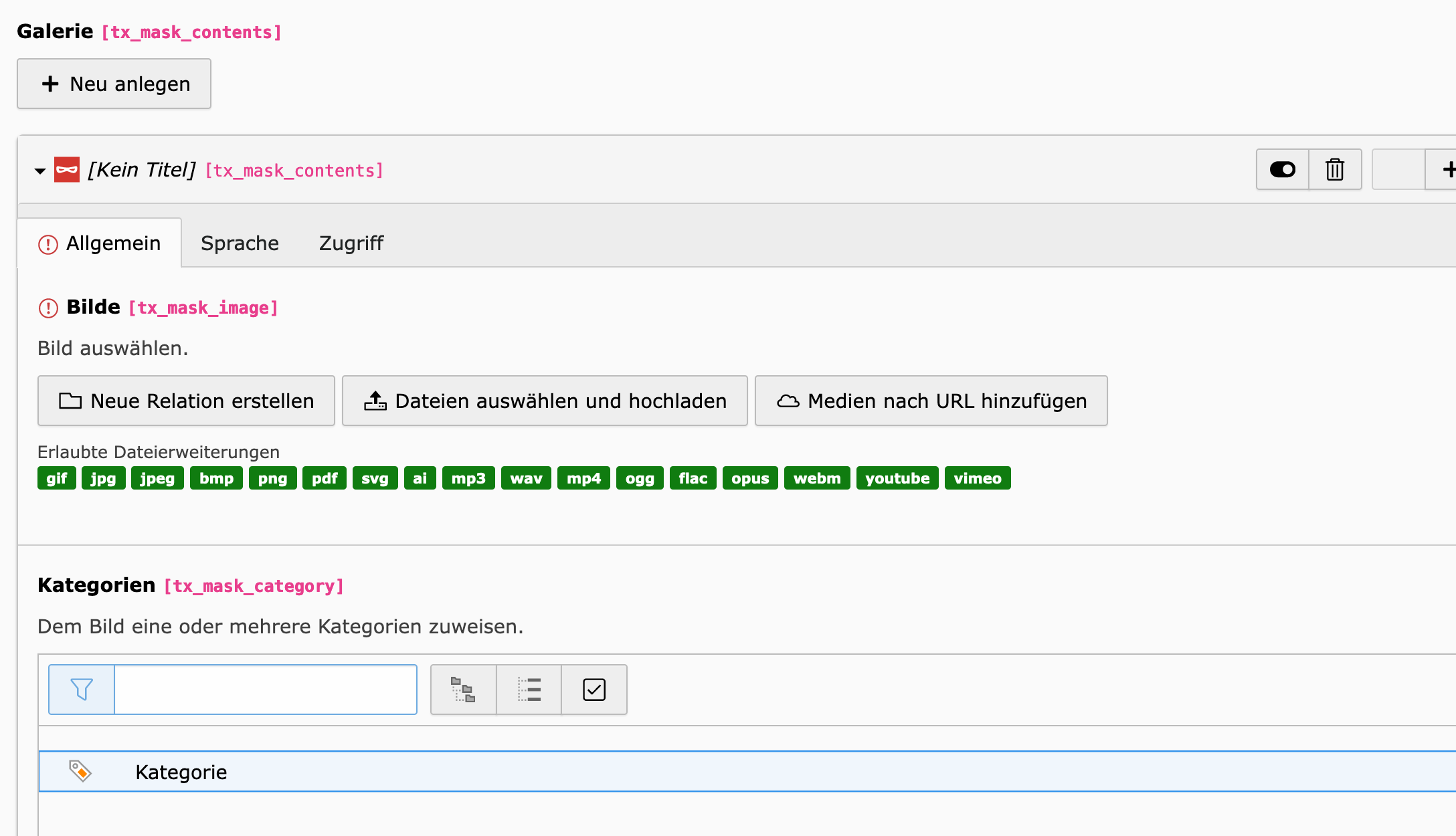 InhalteInhaltselementeFilterbare GalerieVersion: Version 12Auf dieser SeiteFilterbare Galerie AllgemeinBildergalerie, die in Kategorien unterteilt ist. Bild-Element anlegen Bild anhängen/hochladen Bild einer oder mehreren Kategorien zuweisen 123 Beispiel