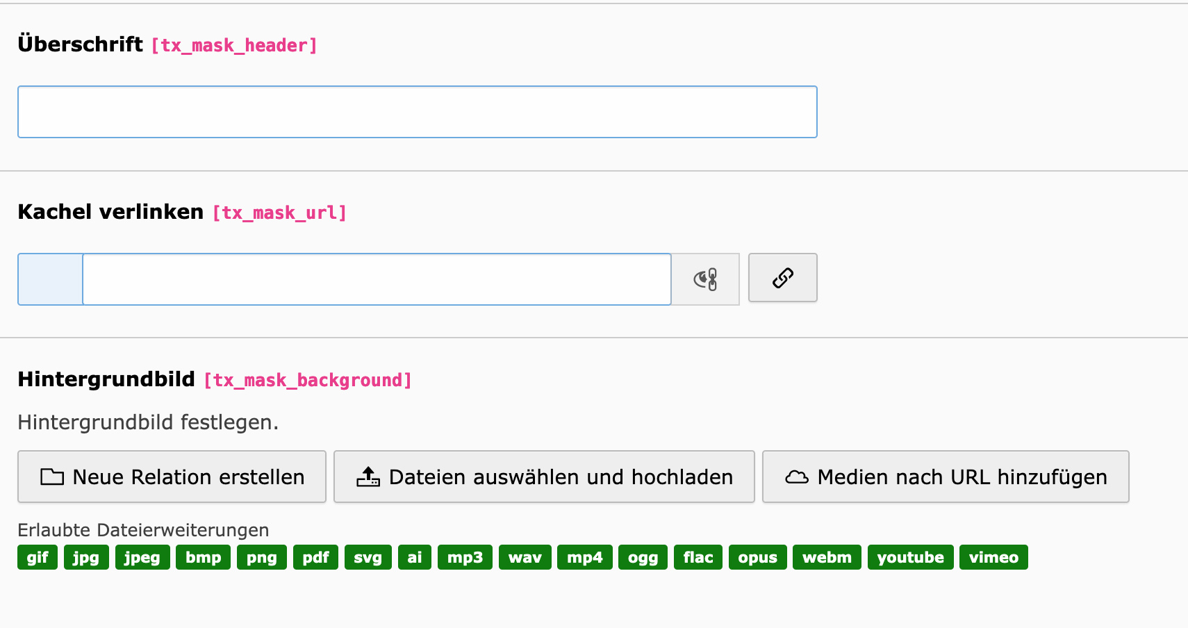 InhalteInhaltselementeKachelVersion: Version 12Auf dieser SeiteKachel AllgemeinKachel mit Bild, Text und Verlinkung. Überschrift eingeben Kachel verlinken Hintergrundbild anhängen/hochladen 123 Beispiel