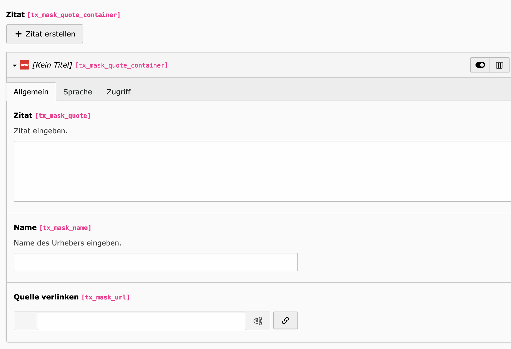 InhalteInhaltselementeZitatVersion: Version 12Auf dieser SeiteZitat AllgemeinEin oder mehrere Zitate mit attraktivem Design Zitat erstellen Zitat eingeben Name des Urhebers eingeben Quelle verlinken 1234 Beispiel