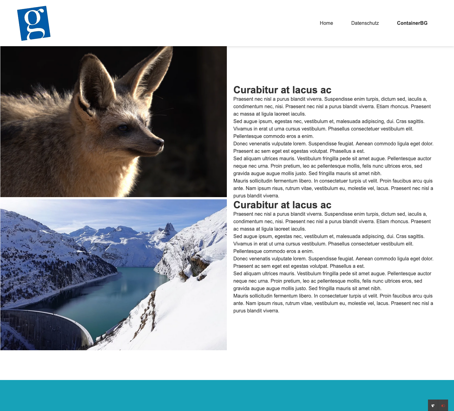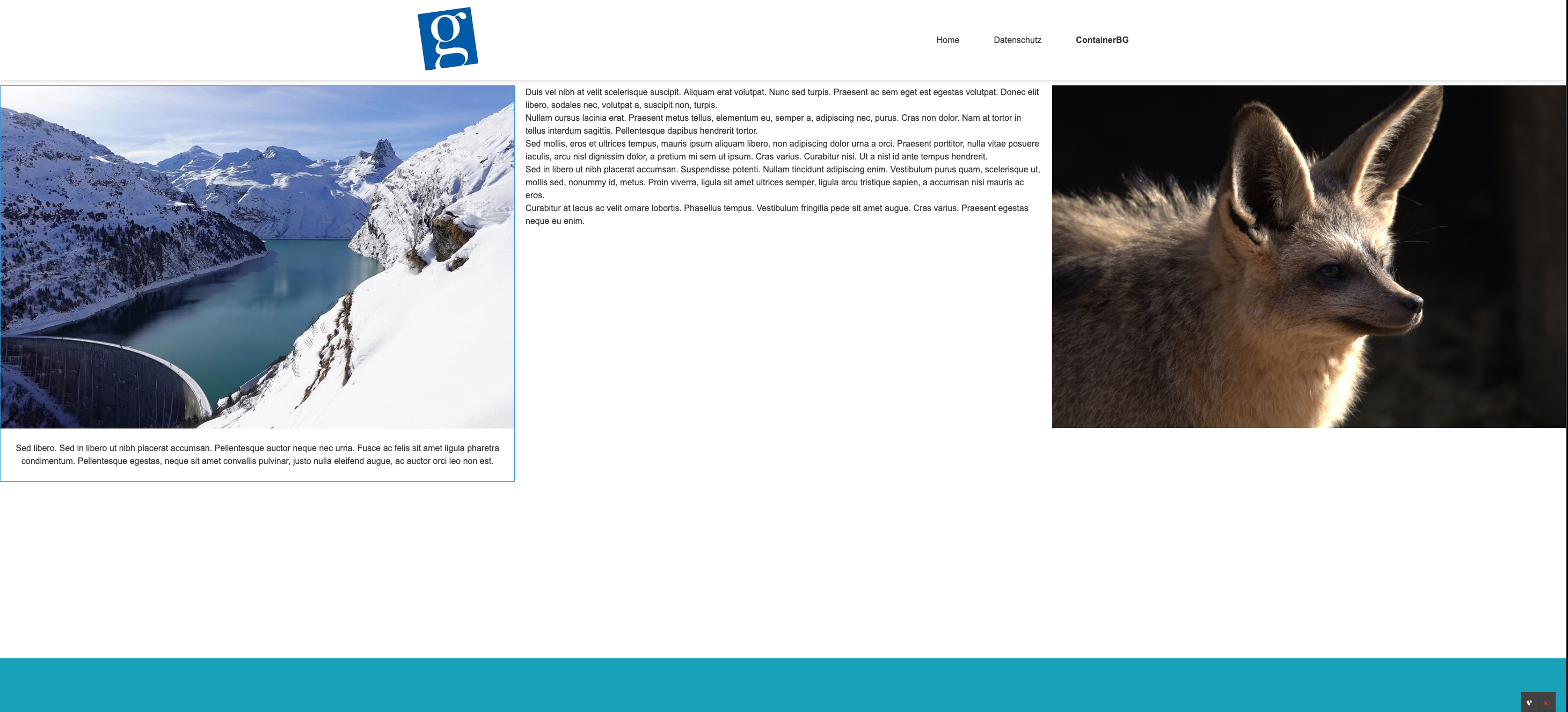 Mit diesem Container können Sie Bilder oder Karusselle definieren, die auf einer Seite der Webpage angezeigt werden. Dies können sie nach dem Erstellen des Containers Links unter Background tun.