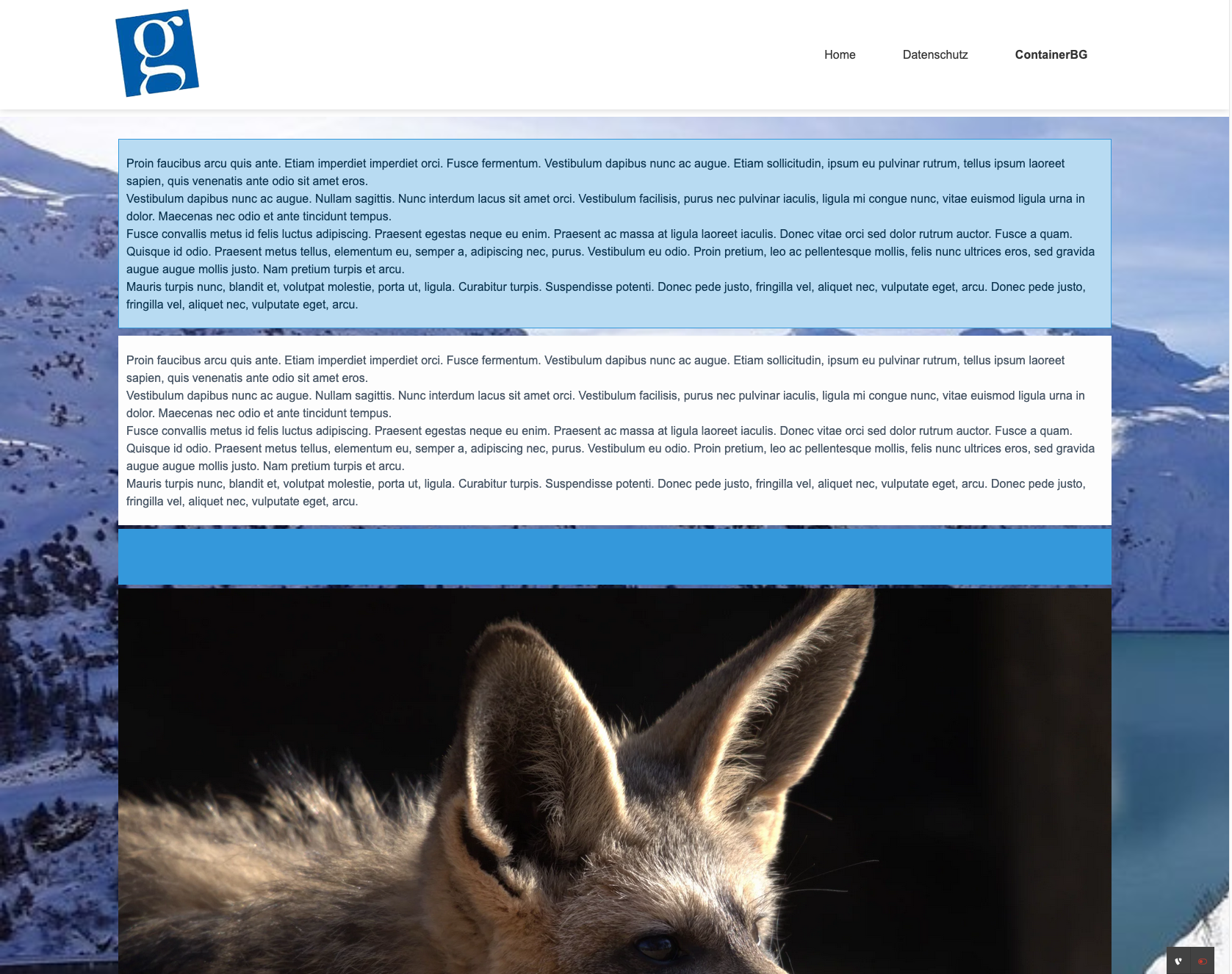 Dieser Container nimmt die komplette Breite der Webseite ein, anders als bei anderen, die eine maximale Breite haben. Dies ist besonders nützlich, wenn Sie ein Bild oder eine Grafik haben, die über die gesamte Breite der Seite gehen soll.