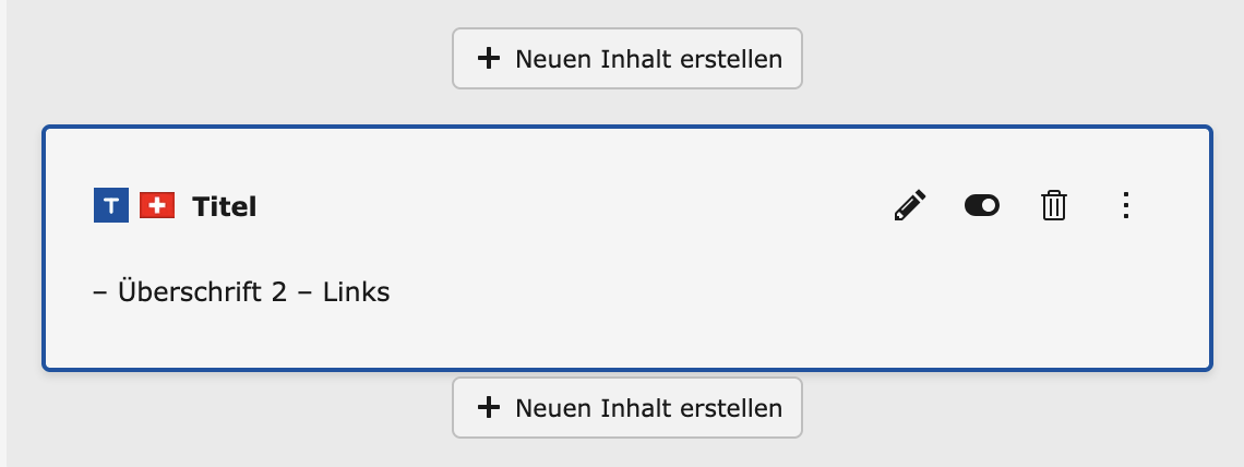 Alle verfügbaren Inhaltselemente sind hier aufgelistet.