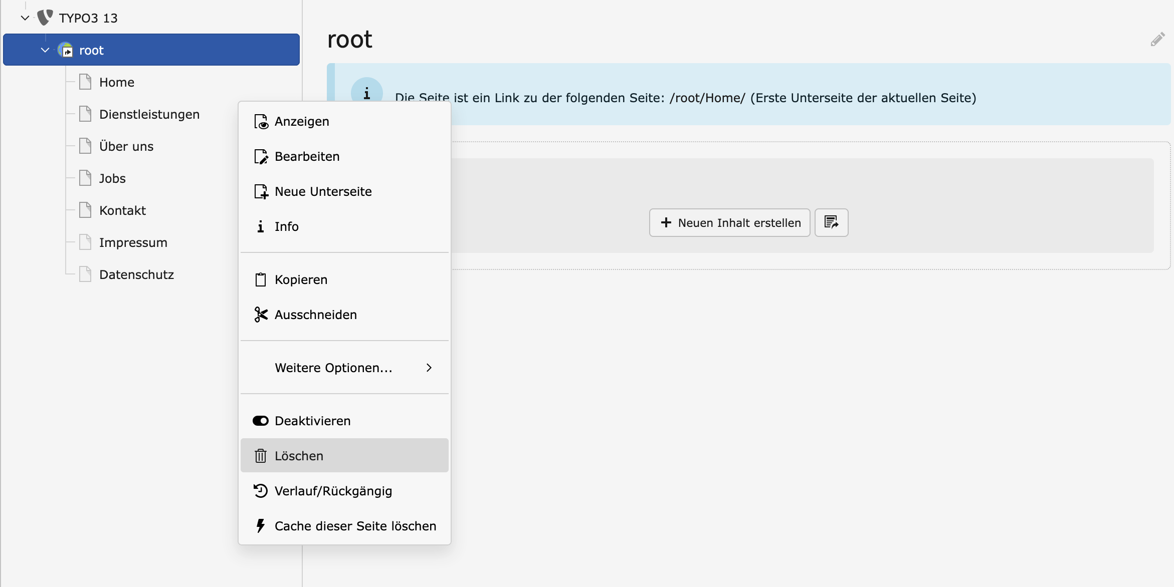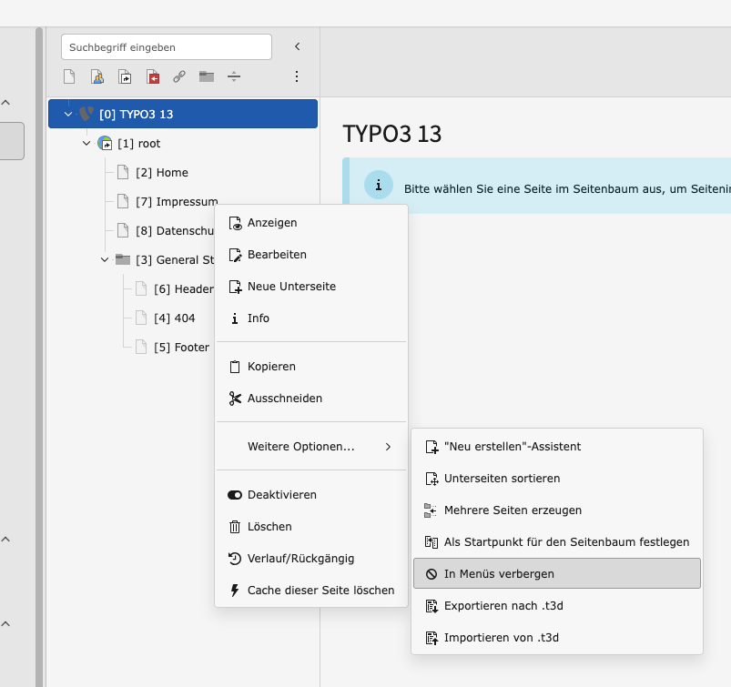 - Rechtsklick auf die betreffende Seite im Seitenbaum