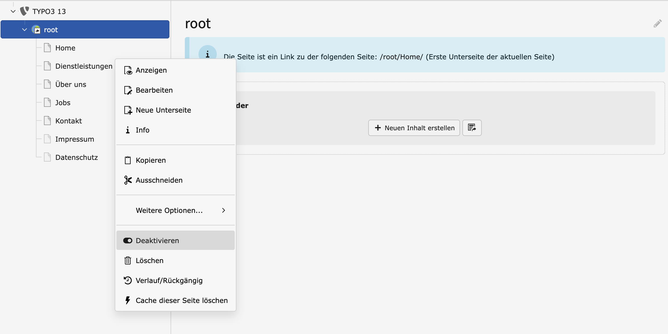 Sie haben die Möglichkeit die Seite zu deaktivieren und somit auf Ihrer Webseite zu verbergen, ohne sie zu löschen.