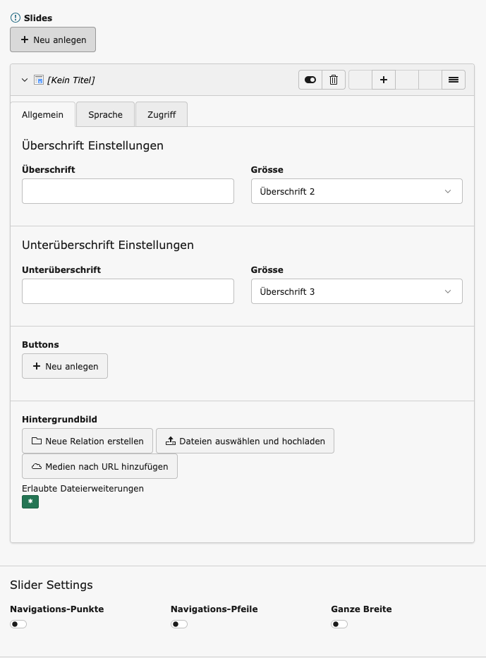- Slider auf der ganzen Breite anzeigen (ja/nein)