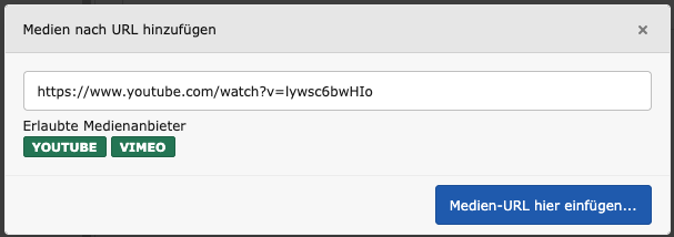 1- YouTube- oder Vimeo-Link kopieren und einfügen.