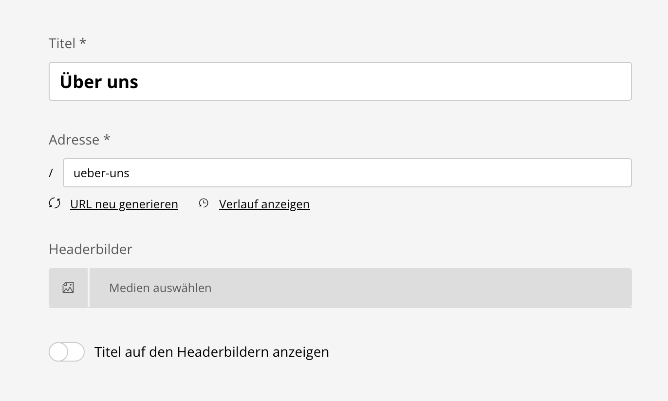 - Der Titel wird in der Navigation verwendet und die Seite wird im Backend so heissen.