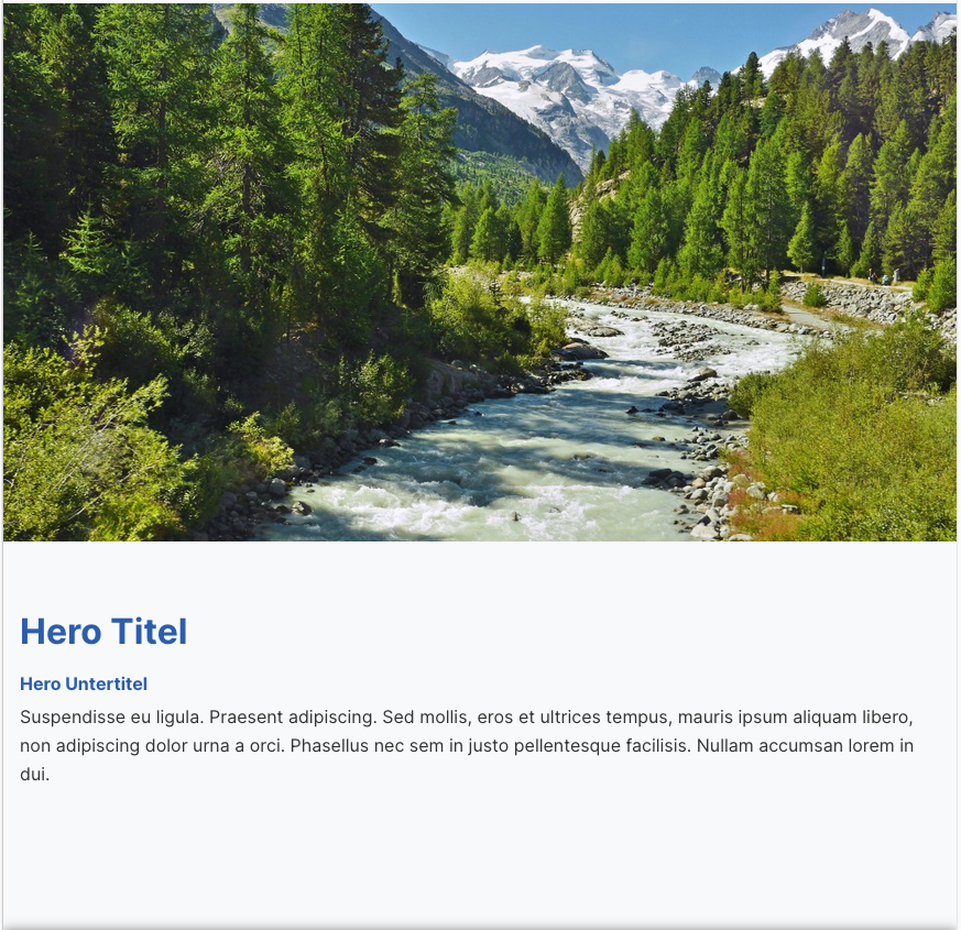 Hero sind grosse Elemente, welche meist am Anfang einer Seite platziert werden um auf ein Produkt oder eine Dienstleistung aufmerksam zu machen. Sie bestehen aus einem Bild, Titel, Untertitel, Text und einem Link-Button.
