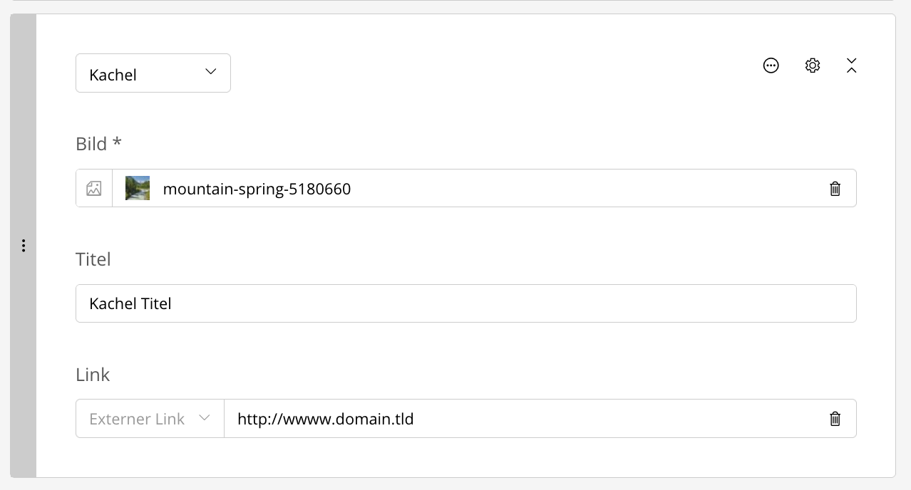 - Verlinkung des Kachel (Unterseite, Externe URL, Datei)