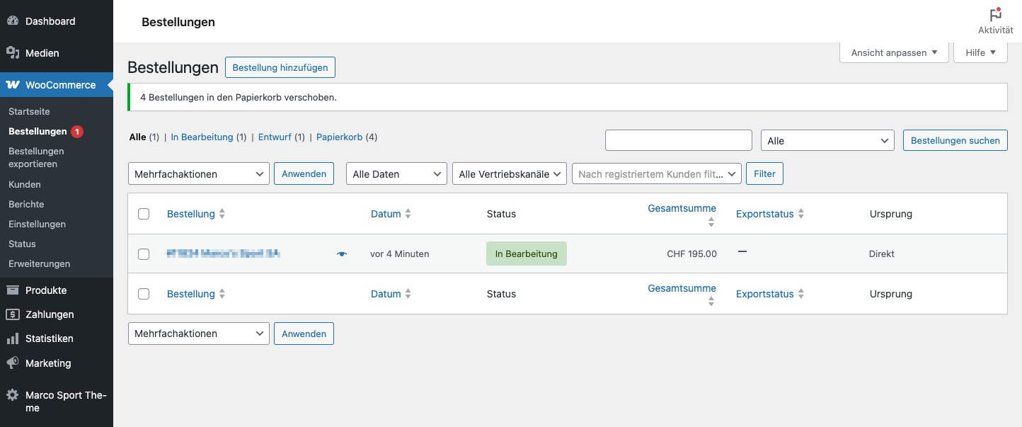 Unter dem Navigationspunkt Bestellungen können Sie Ihre Bestellungen verwalten. Unter diesem Reiter können Sie Ihre Bestellungen bearbeiten, manuell welche erstellen oder auch löschen.
