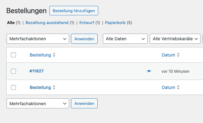 Nach dem Erstellen der Bestellung können Sie sie wie jede andere Bestellung im Backend sehen.