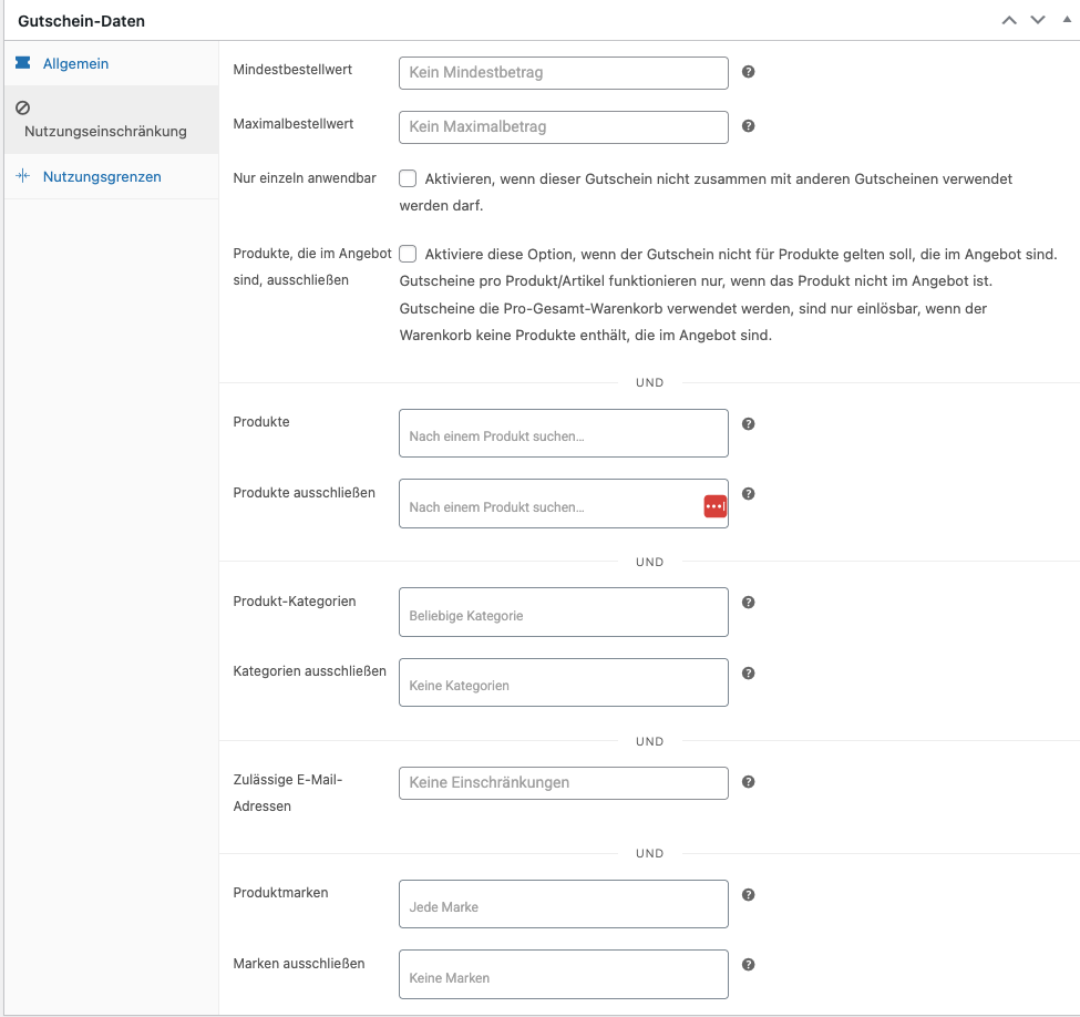 - Nutzungsgrenze pro Benutzer (wie oft der Gutschein pro Kunde verwendet werden kann)