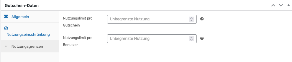 - Nutzungslimit pro Gutschein (wie oft der Gutschein insgesamt verwendet werden kann)