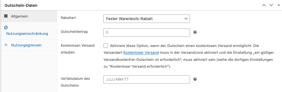 - definieren Sie ein Ablaufdatum für den Gutschein