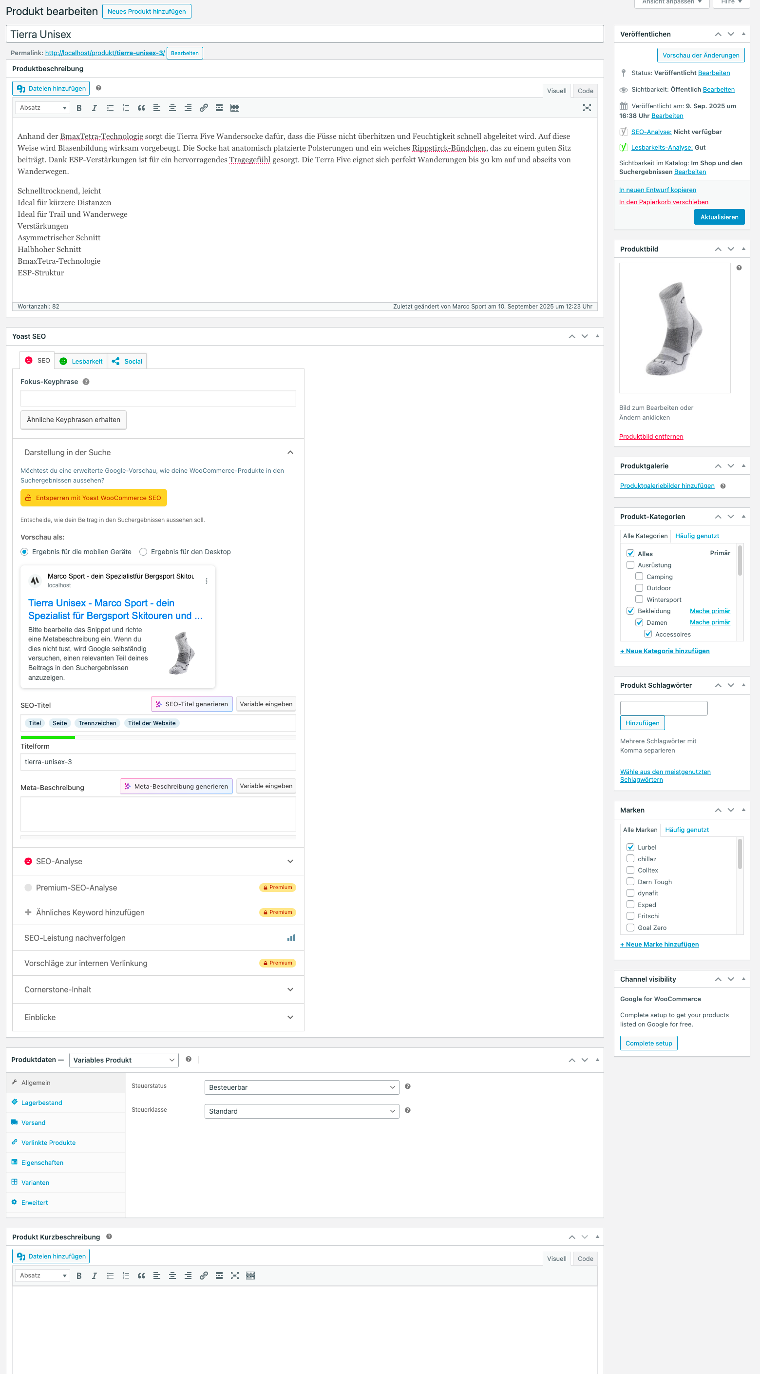 In dieser Ansicht können Sie folgende Attribute des Produktes bearbeiten: