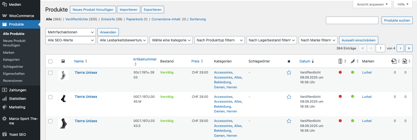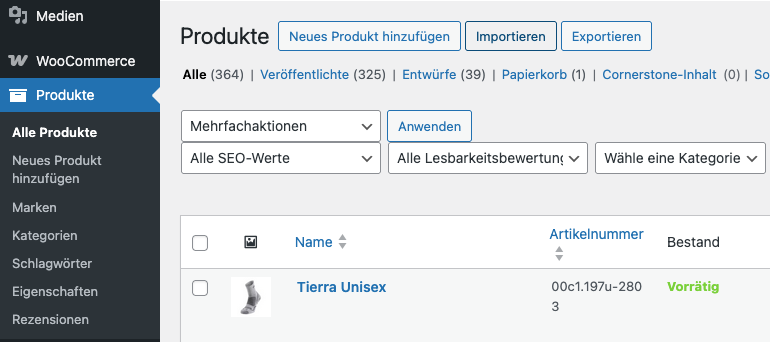 Durch das Navigationsfeld Produkte können Sie alle Ihre Produkte verwalten. Hier können Sie: