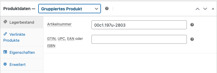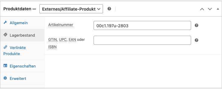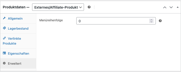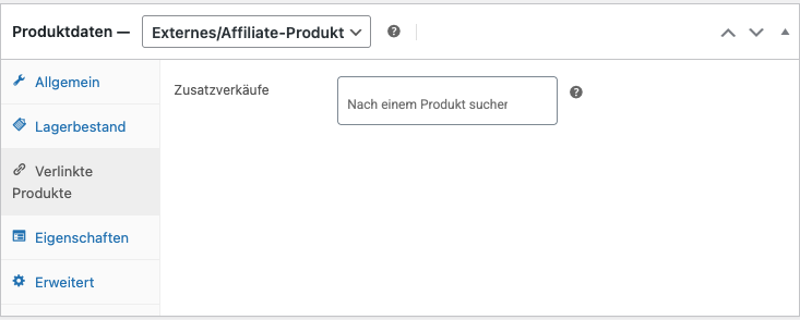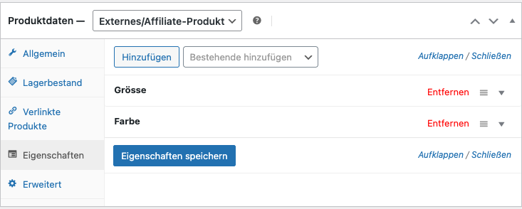 Artikel, die als Externes/Affiliate-Produkt definiert sind, haben nur Zugriff auf die Reiter: