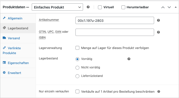 Bei einfachen Produkten kann es sich um normale, virtuelle und/oder herunterladbare Produkte handeln.