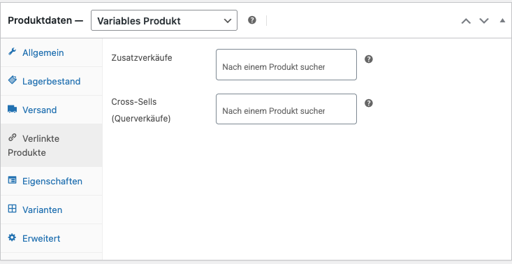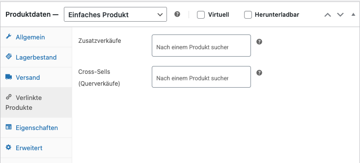 Im Reiter Verlinkte Produkte können Sie Zusatzverkäufe und Cross-Sells definieren.
