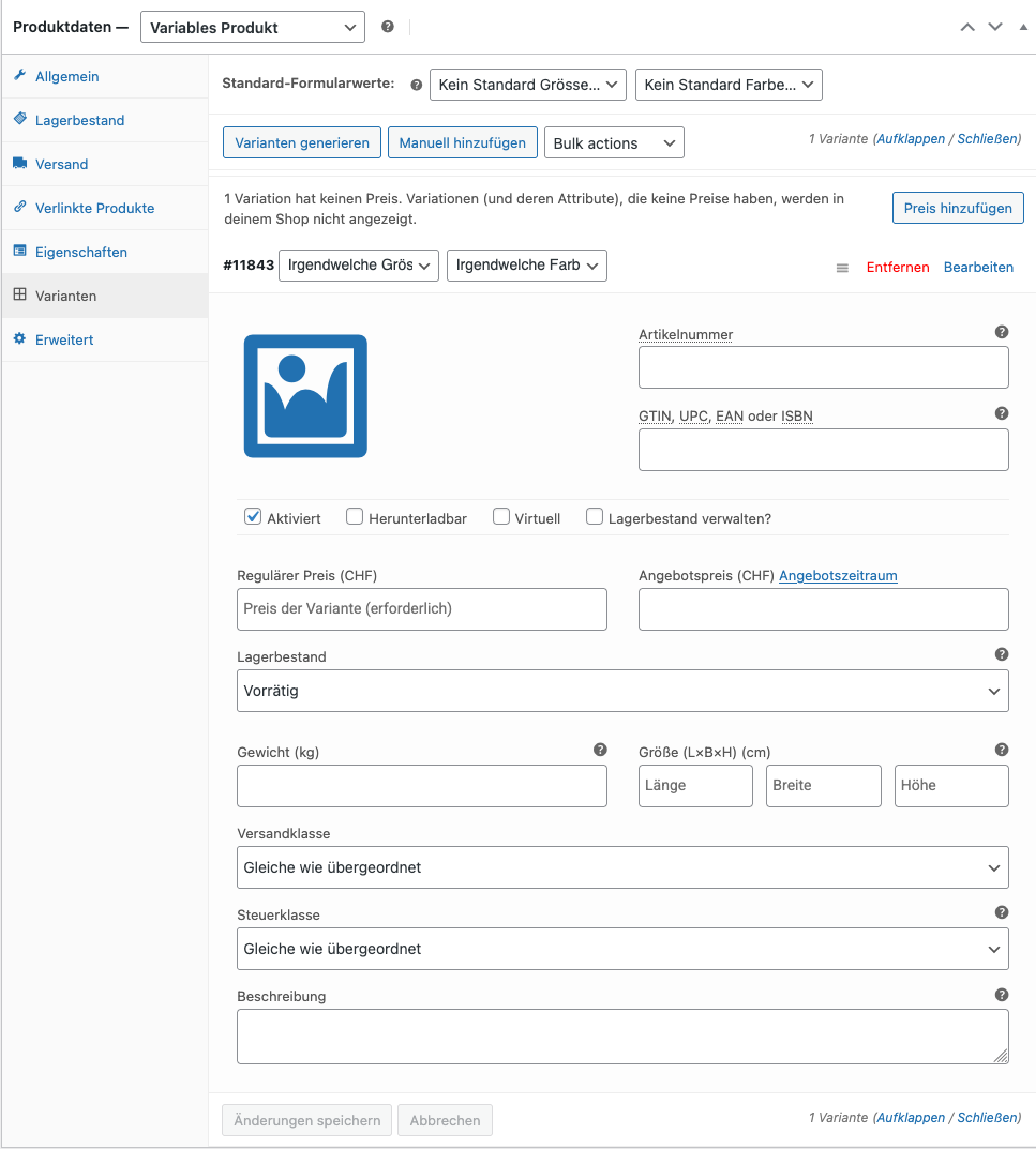 Gewisse Produkte haben verschiedene Variationen, wie z.B. Farbe und Grösse. Diese Produkte können als variables Produkt definiert werden.