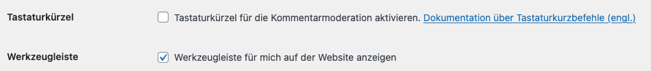 Wordpress bietet eine Reihe von Integrierten Tastaturkürzeln die Ihnen die Arbeit im Backend erleichtern können. Damit sie diese nutzen können müssen sie die Option Tastaturkürzel aktivieren. Hier haben Sie auch einen Link zu einer Übersicht der verfügbaren Tastaturkürzel. Zur offiziellen Dokumentation