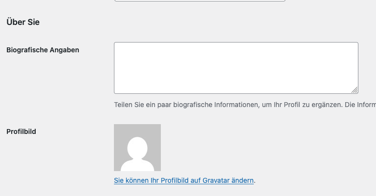 In diesem Bereich können sie eine Kurze biografie über sich selbst schreiben. Und Ein Profil Bild von sich hochladen.